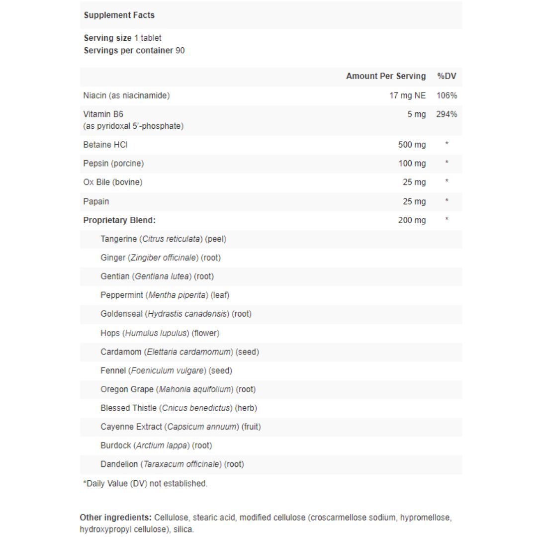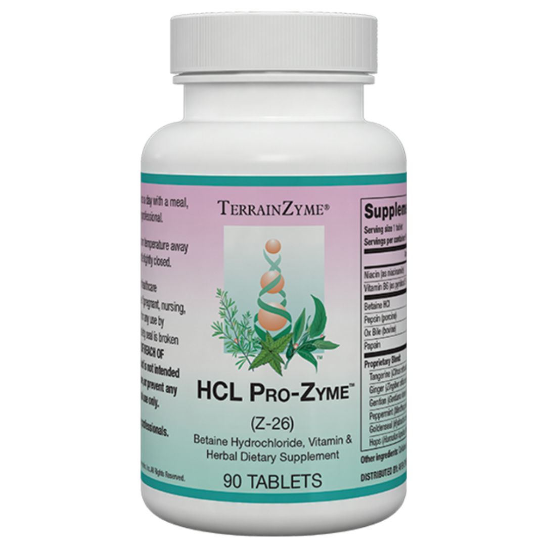 HCL Pro-Zyme supports digestive processes through 500 mg per serving of betaine HCl and a proprietary blend of key ingredients.* Gentian, peppermint, cardamom, and dandelion are just a few of the specially selected herbs that comprise this product's unique formulation. This formula also contains high-potency vitamin B6 and is an excellent source of vitamin B3.