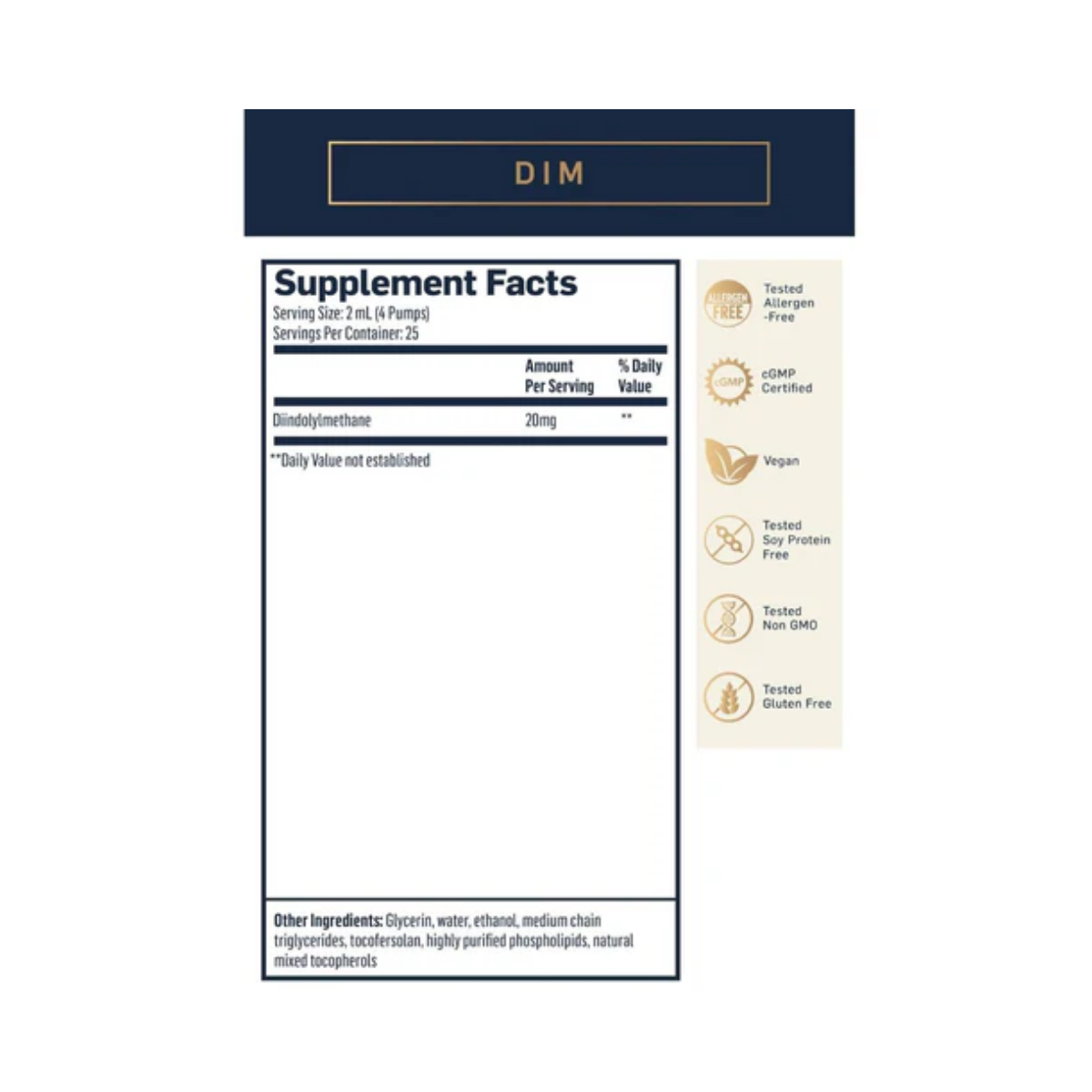 Nanoemulsified DIM contains highly-bioavailable diindolylmethane, a compound derived from indole-3-carbinol that is found in cruciferous vegetables such as broccoli, Brussels sprouts, cauliflower, and kale. DIM is a crucial contributor to the health benefits of cruciferous veggies, with positive effects on numerous body systems.