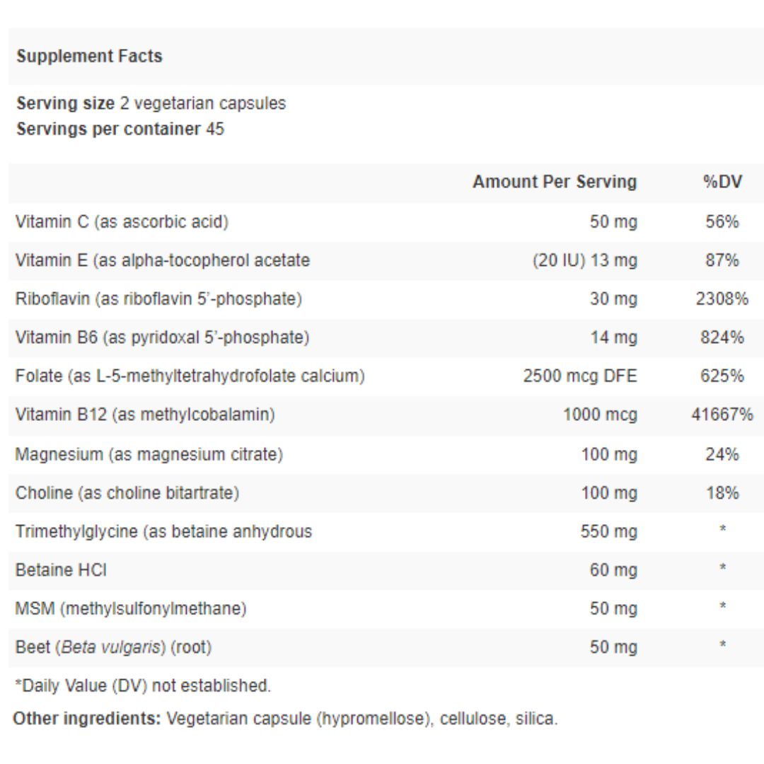 Super Methyl-SP™ supports methylation reactions, important for metabolism of homocysteine, by providing a combination of targeted nutrients and cofactors, such as trimethylglycine at 550 mg and MSM at 50 mg per serving.* This formula includes the antioxidant vitamins C and E, as well as high-potency riboflavin, vitamin B6, folate, and vitamin B12. In addition, this formula includes a biologically active form of folate (5-methyltetrahydrofolic acid or 5-MTHF), which is normally produced and available to the body only at the final stage of the folate metabolic process*. Also available, Methyl SPTM (K14) with 1200 mcg of folate per serving.